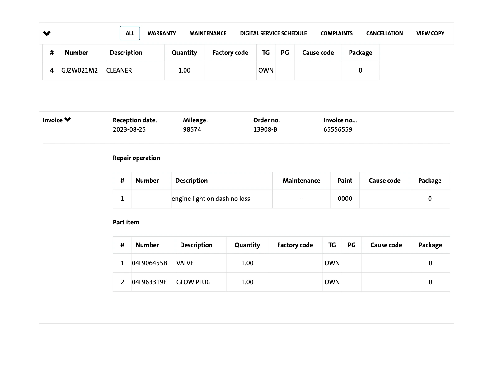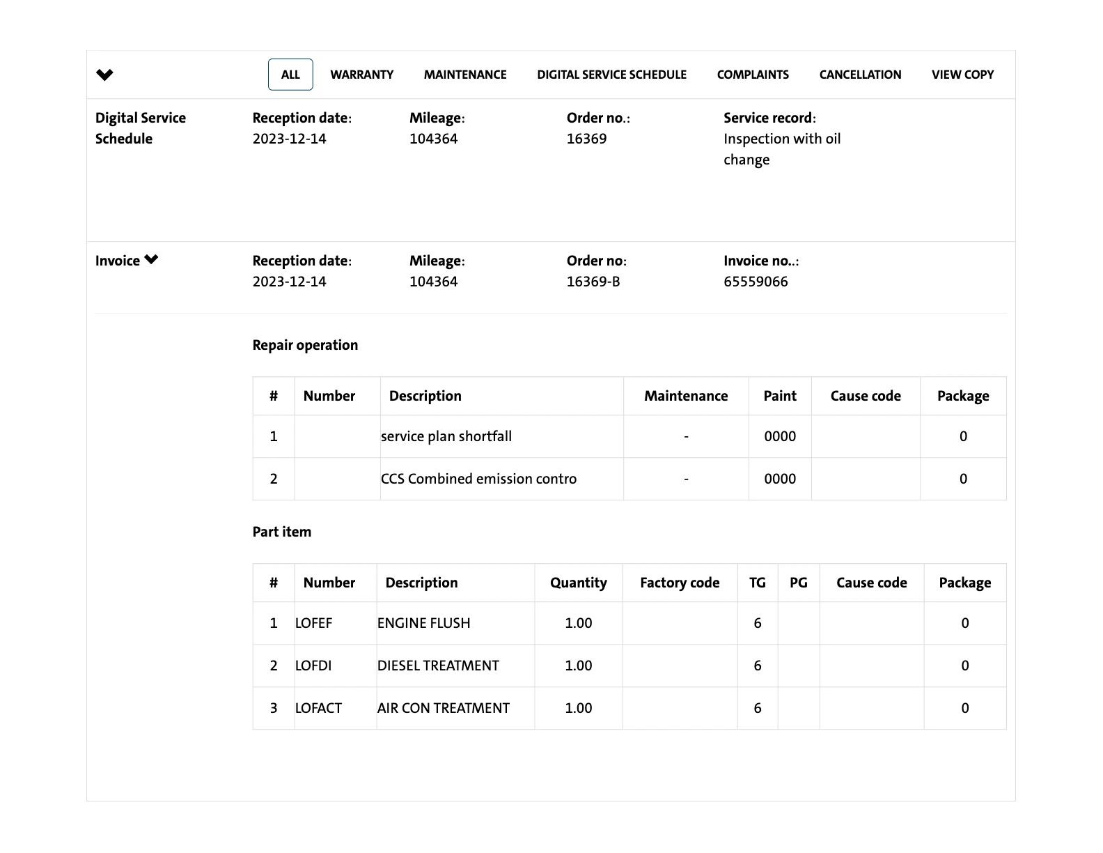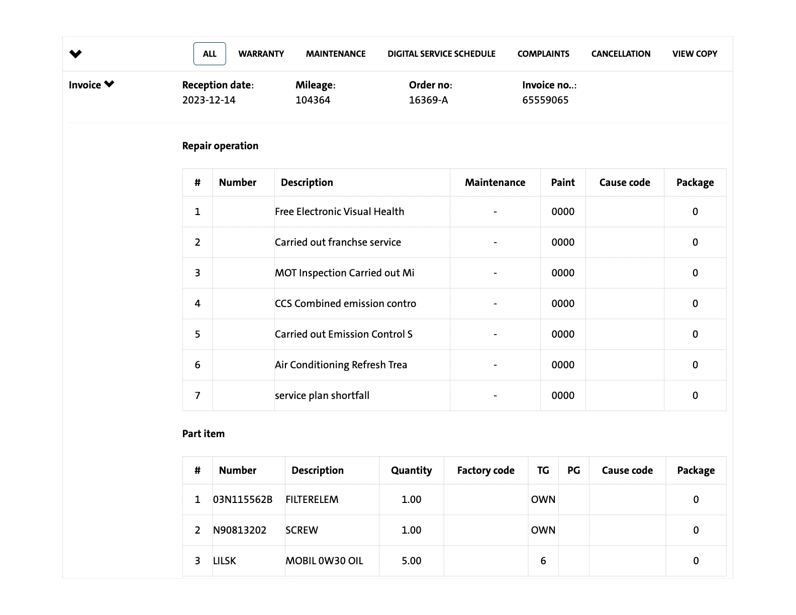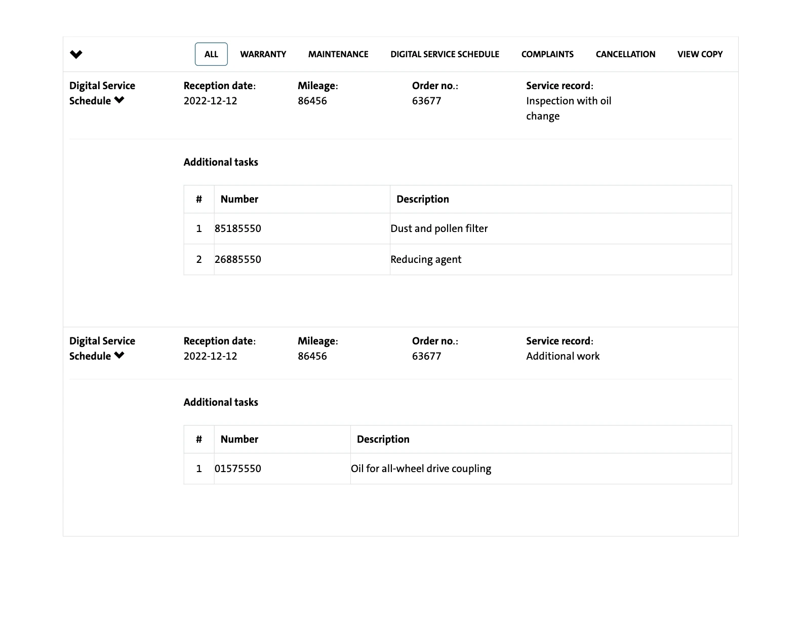 All records come directly from the official VW manufacturer database used by authorised dealers worldwide. This includes mileage, service visits, technical campaigns, and full equipment lists – the same data VW dealers use for repairs and maintenance.