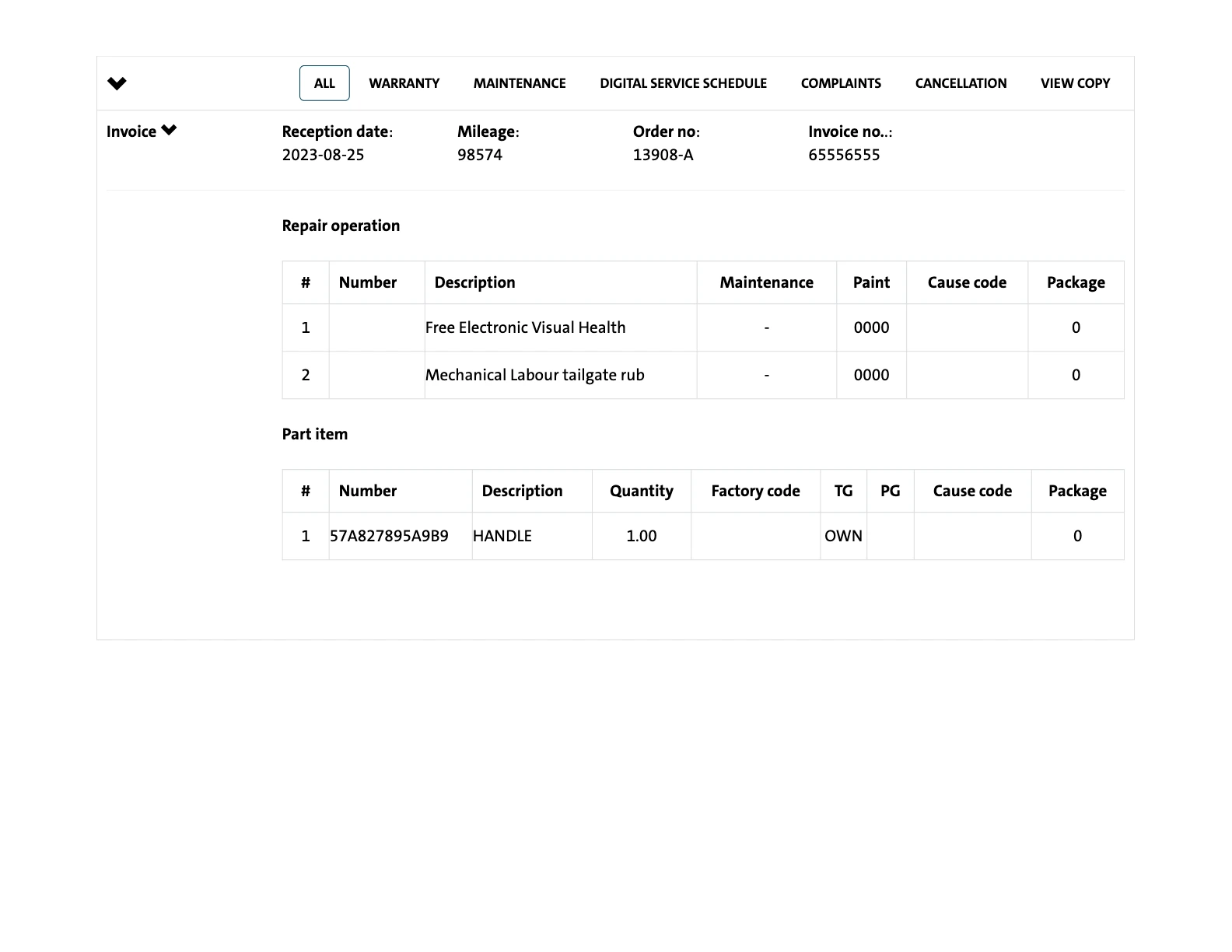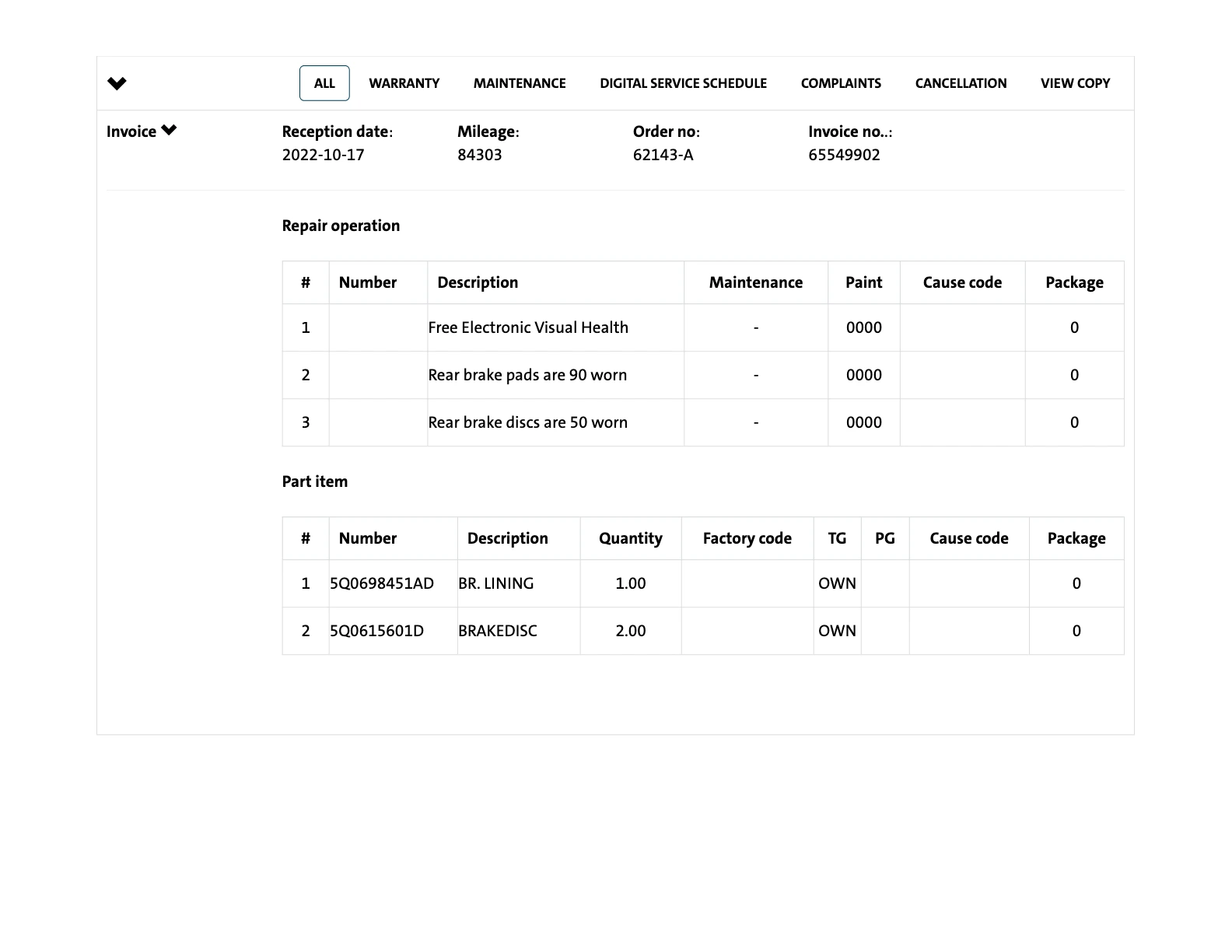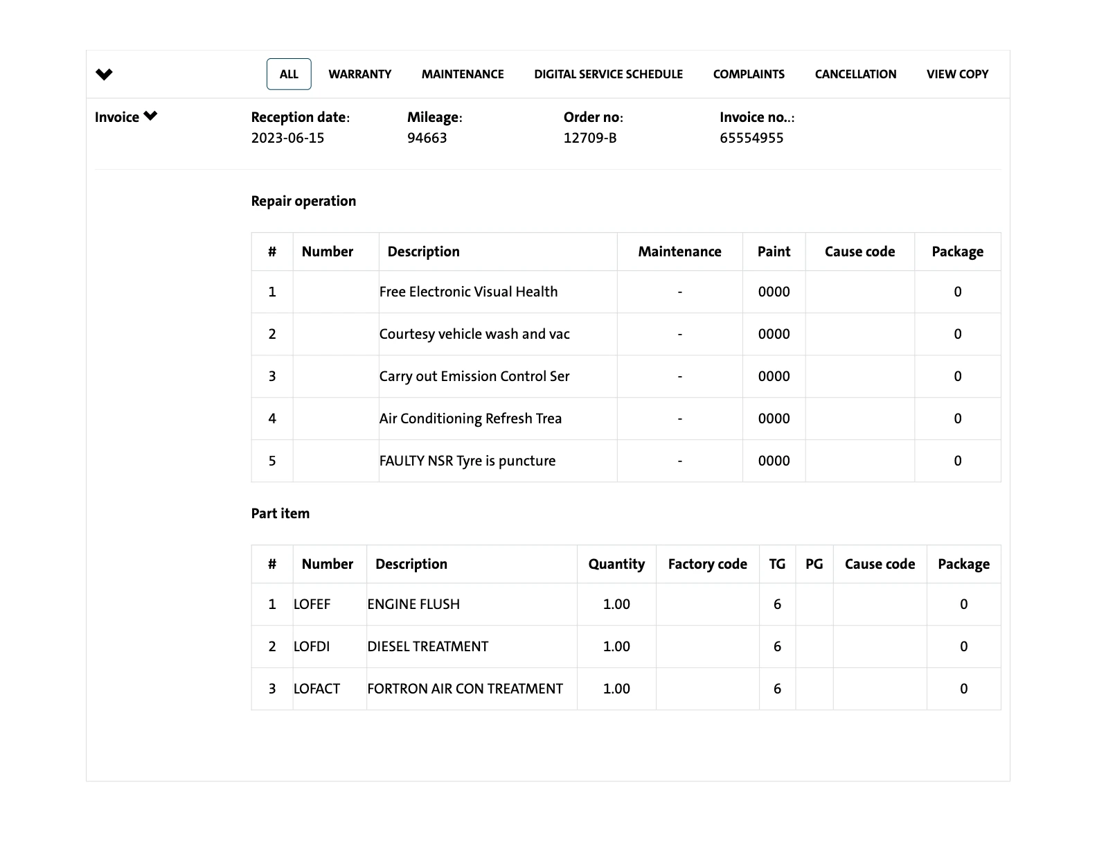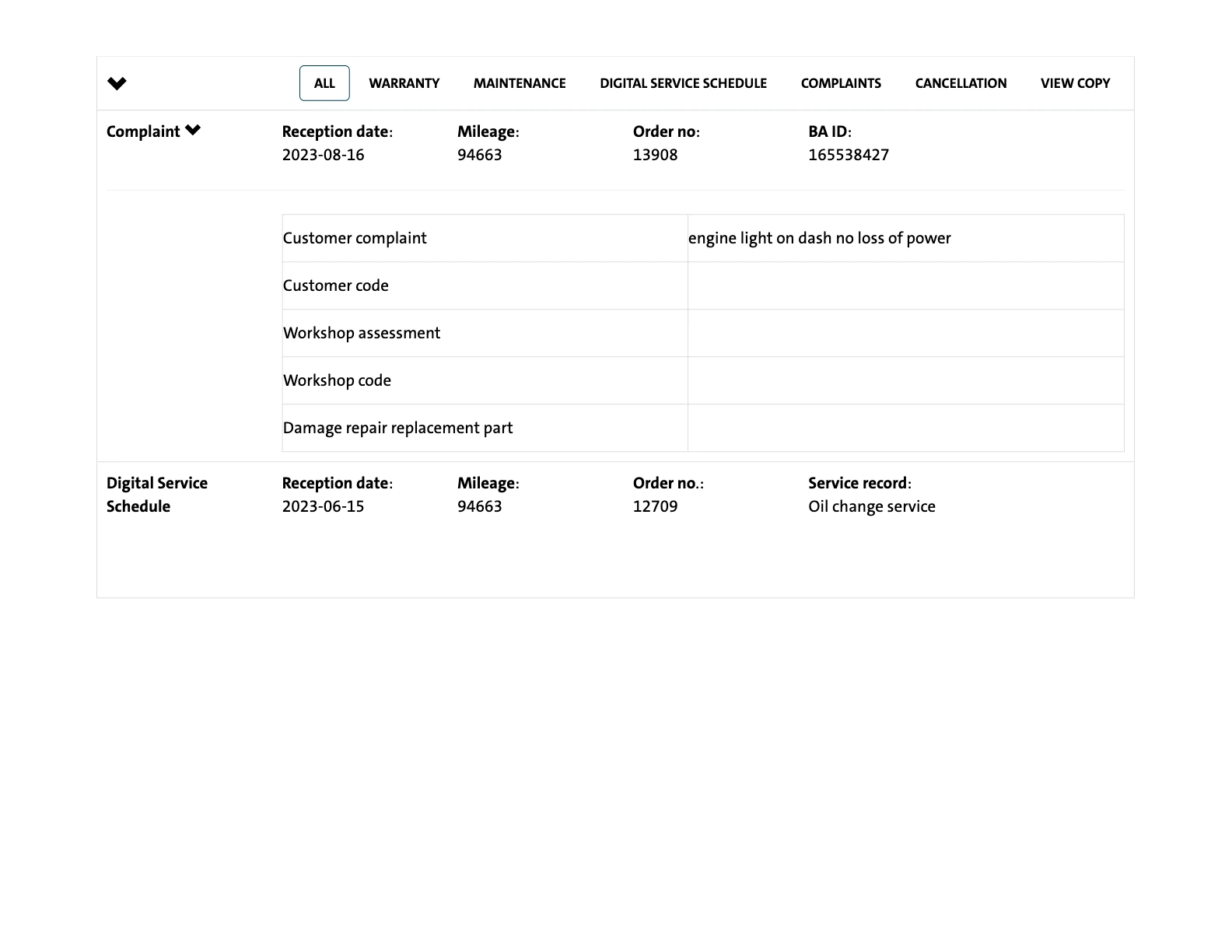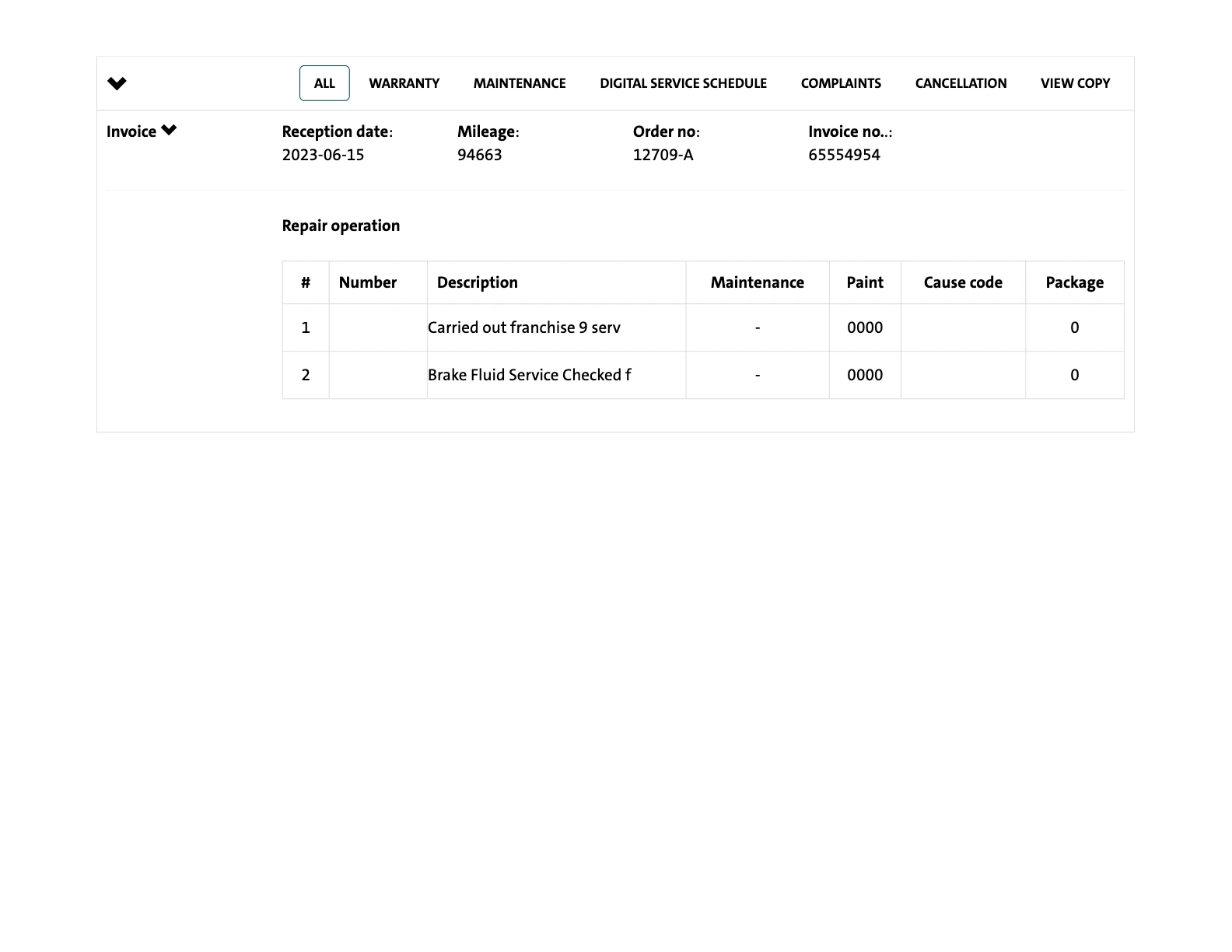 All records come directly from the official VW manufacturer database used by authorised dealers worldwide. This includes mileage, service visits, technical campaigns, and full equipment lists – the same data VW dealers use for repairs and maintenance.